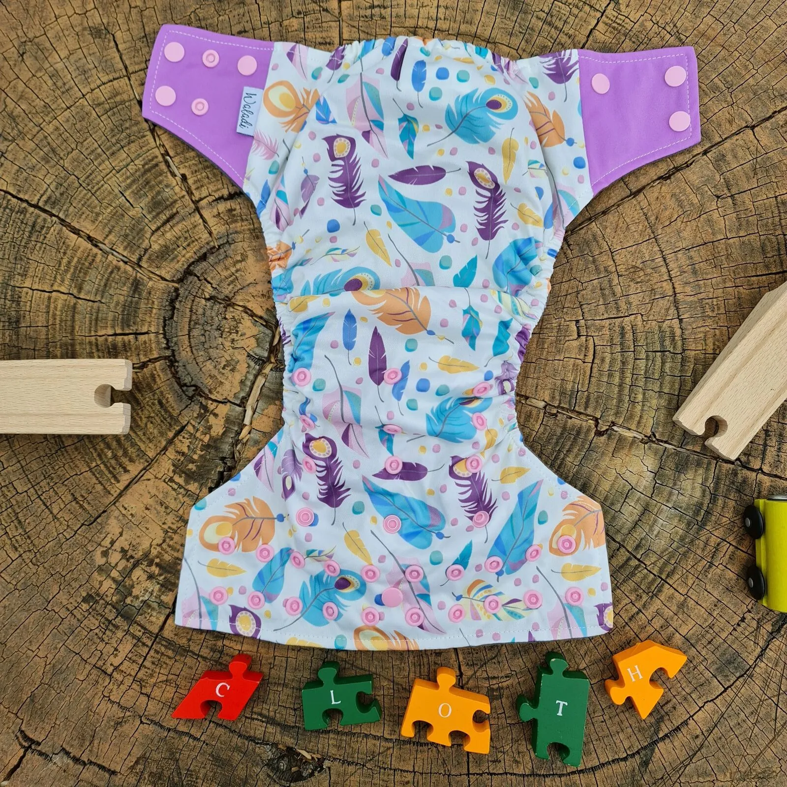 - Designed to fit most babies from birth to toilet training, thanks to the adjustable snaps located on the nappy