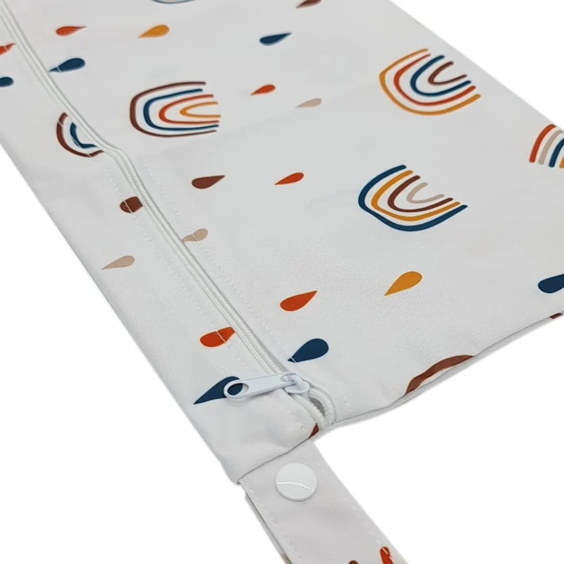Our pouches are the perfect size for a quick trip out. Our pouch wet bag can hold two cloth nappies, pre-stuffed with two bamboo charcoal inserts each. Or a change of clothes for baby and 1 pre-stuffed cloth nappy.