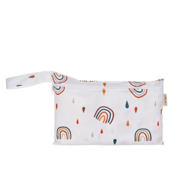 Our pouches are great when taking the little ones swimming. The pouch fits 2 swim nappies and bathers. The pouch also has no seam at the bottom, so you can rest assured that there will be no leaks when putting damp items back in the bag.