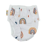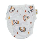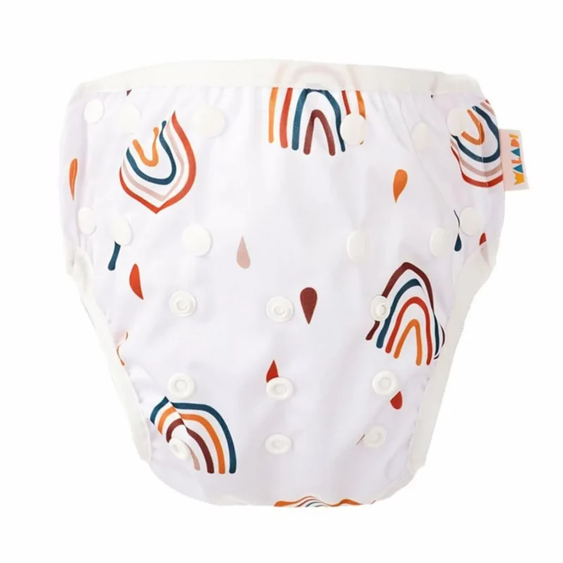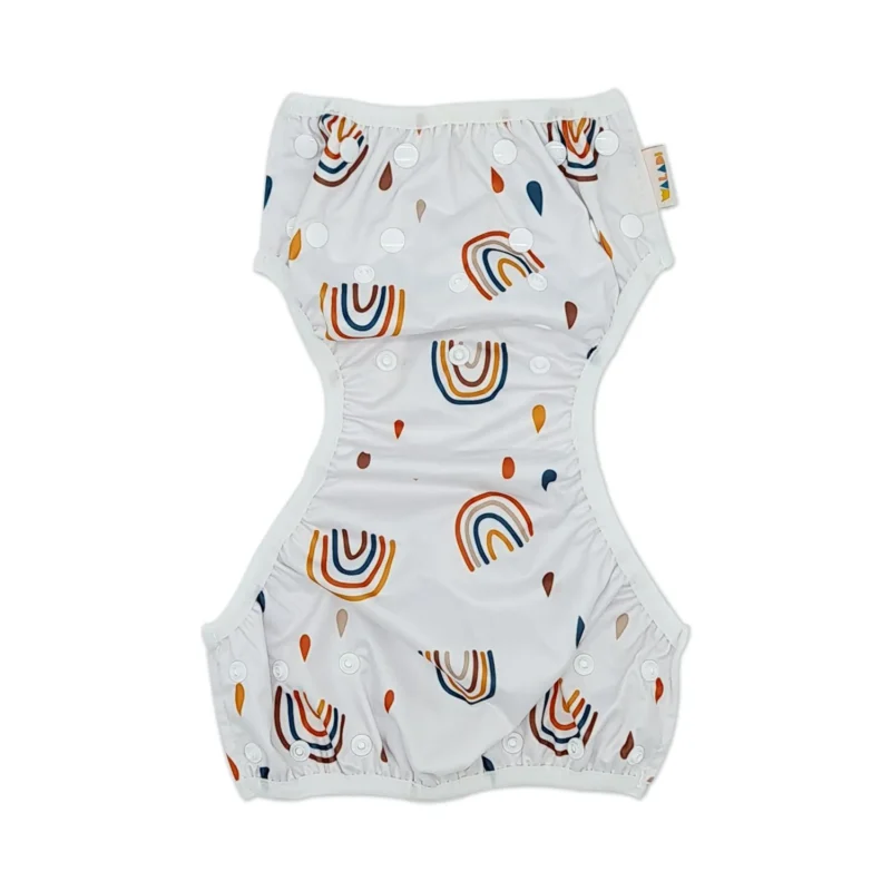 - Has a built in system of snaps to easily adjust the size across the waistband as well as the length of the swim nappy.