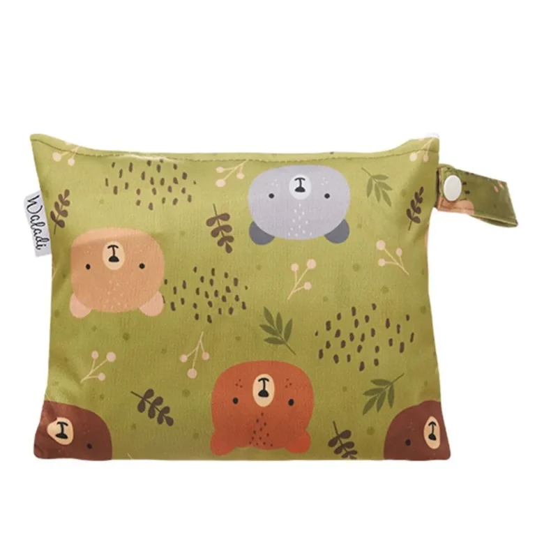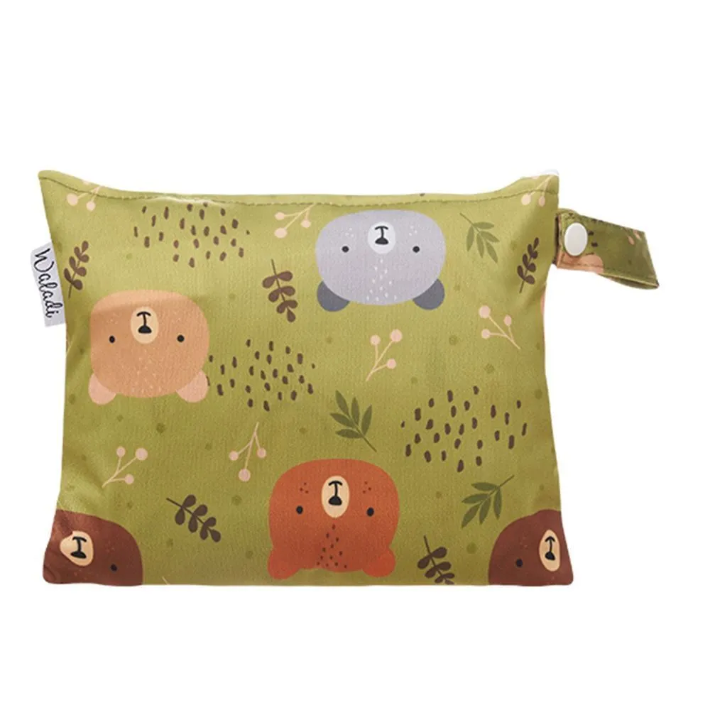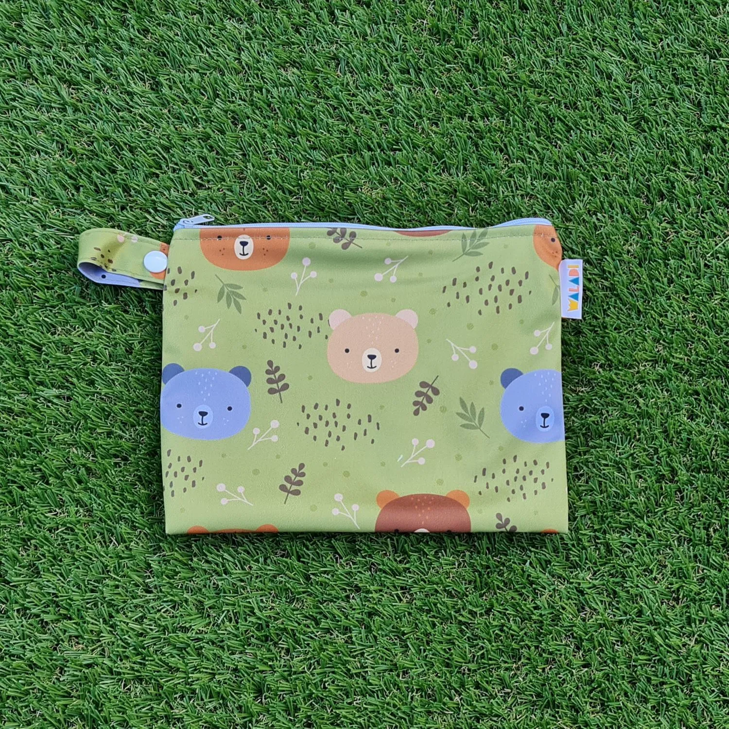 Small Waterproof Wet Bag with Zip 19 x 16cm – Green Forest Bear Design