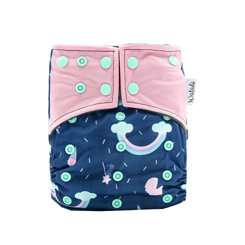 - Designed to fit most babies from birth to toilet training, thanks to the adjustable snaps located on the nappy