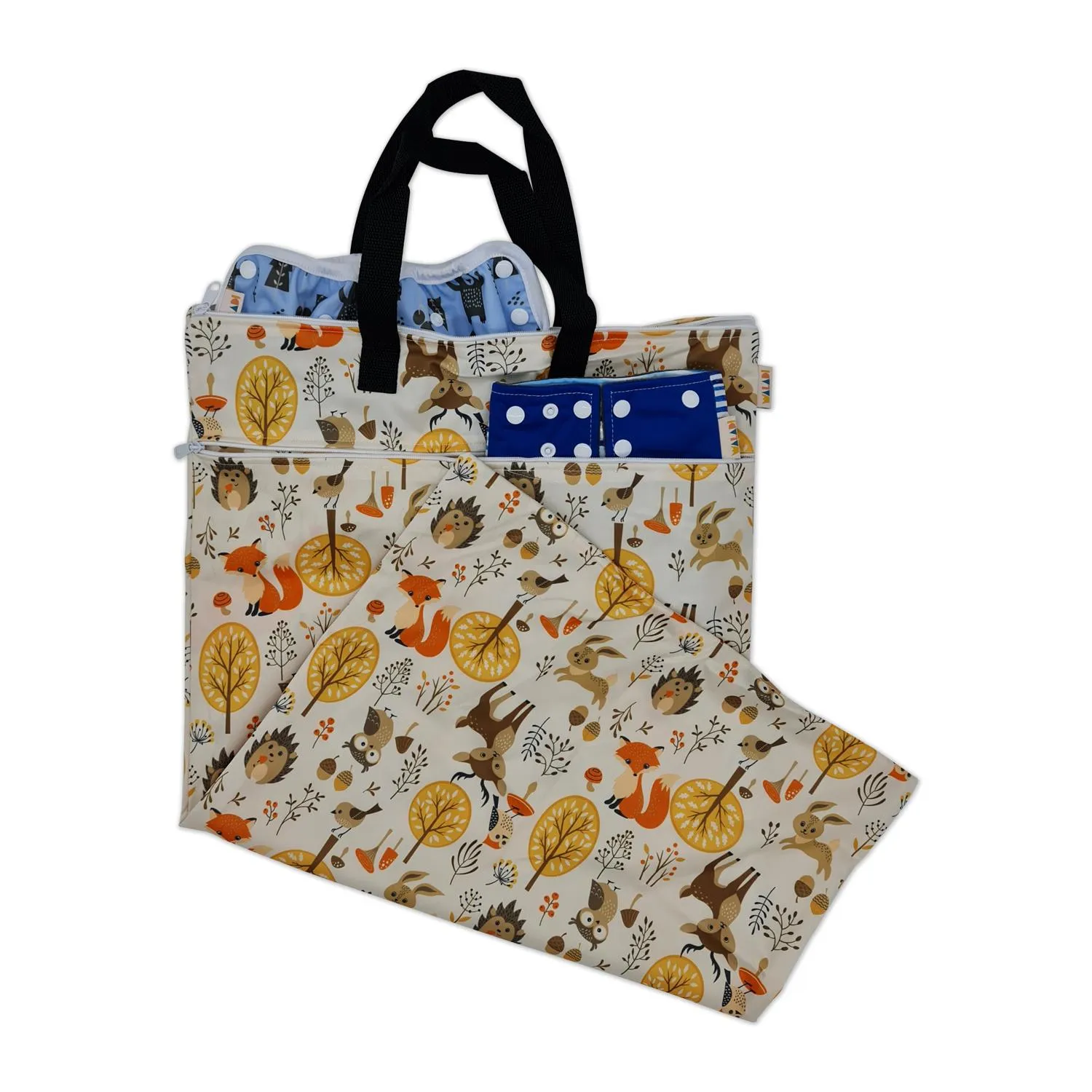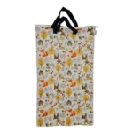 A wet bag is an essential for any diaper bag. Some parents use it solely as a diaper bag! It holds soiled clothing, cloth diapers, wet swimsuits, toys, wet wipes, snacks, sippy cups, bottles, toiletries, potting training supplies…the possibilities are endless! Our wet bags are machine washable and dryer safe! We recommend low settings for both.