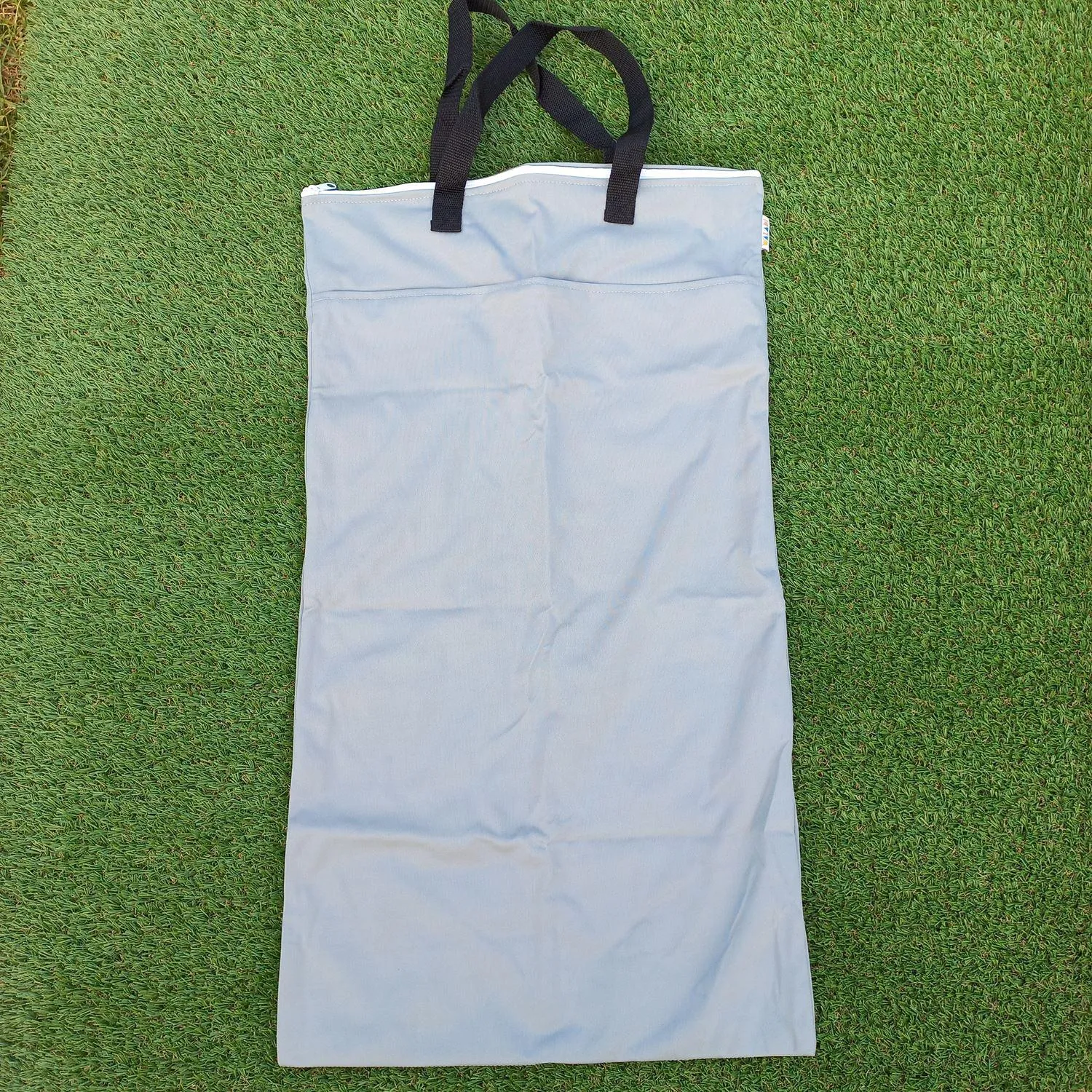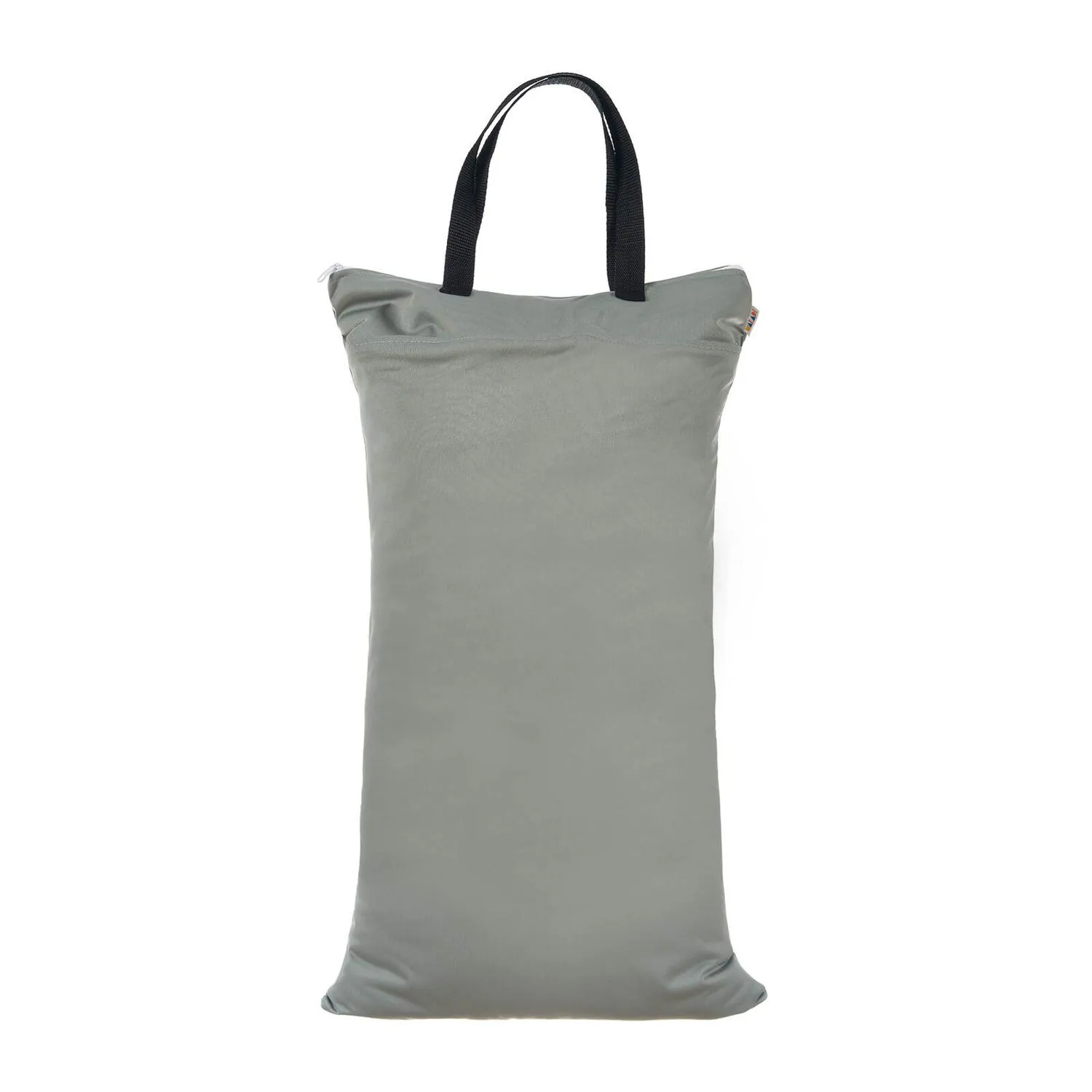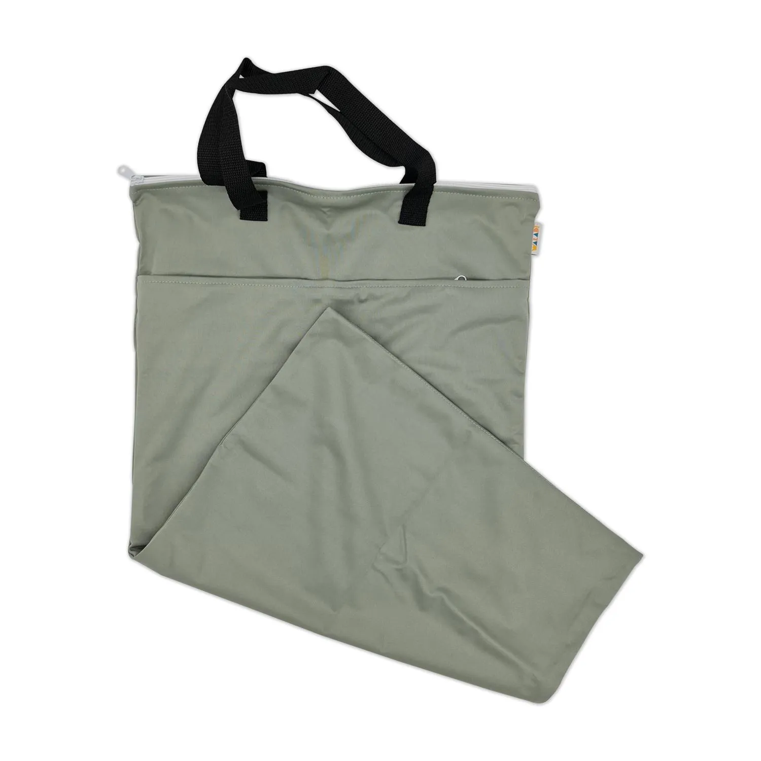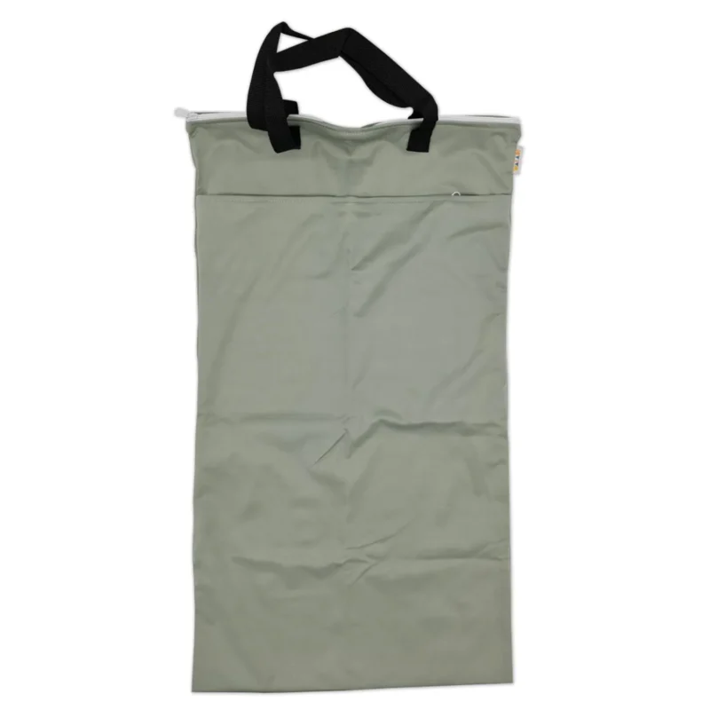 A wet bag is an essential for any diaper bag. Some parents use it solely as a diaper bag! It holds soiled clothing, cloth diapers, wet swimsuits, toys, wet wipes, snacks, sippy cups, bottles, toiletries, potty training supplies…the possibilities are endless! Our wet bags are machine washable and dryer safe! We recommend low settings for both.