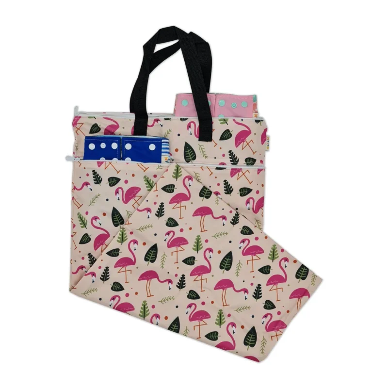 Waterproof large wet bag with 2 zips – Pink Flamingo Design