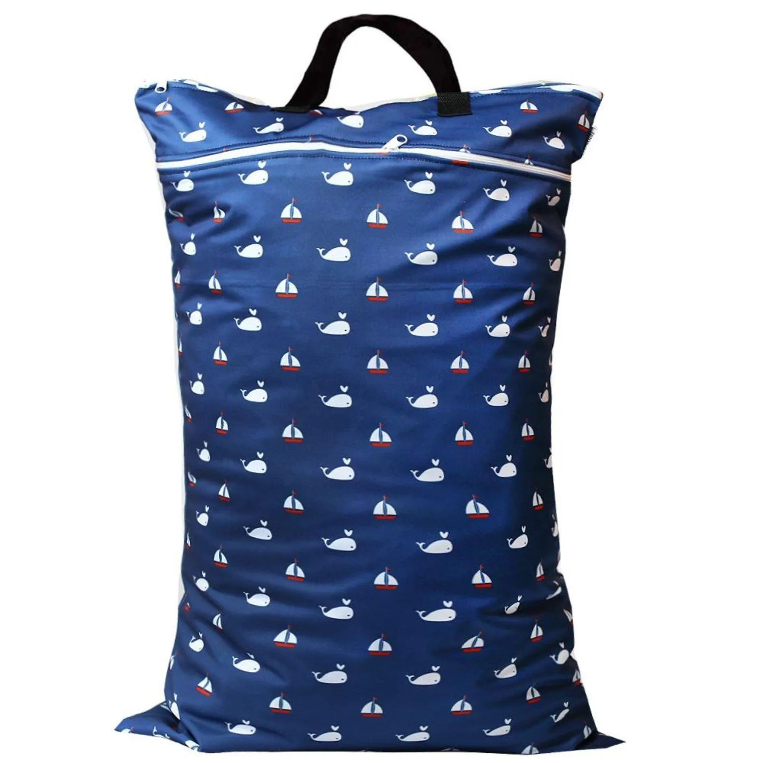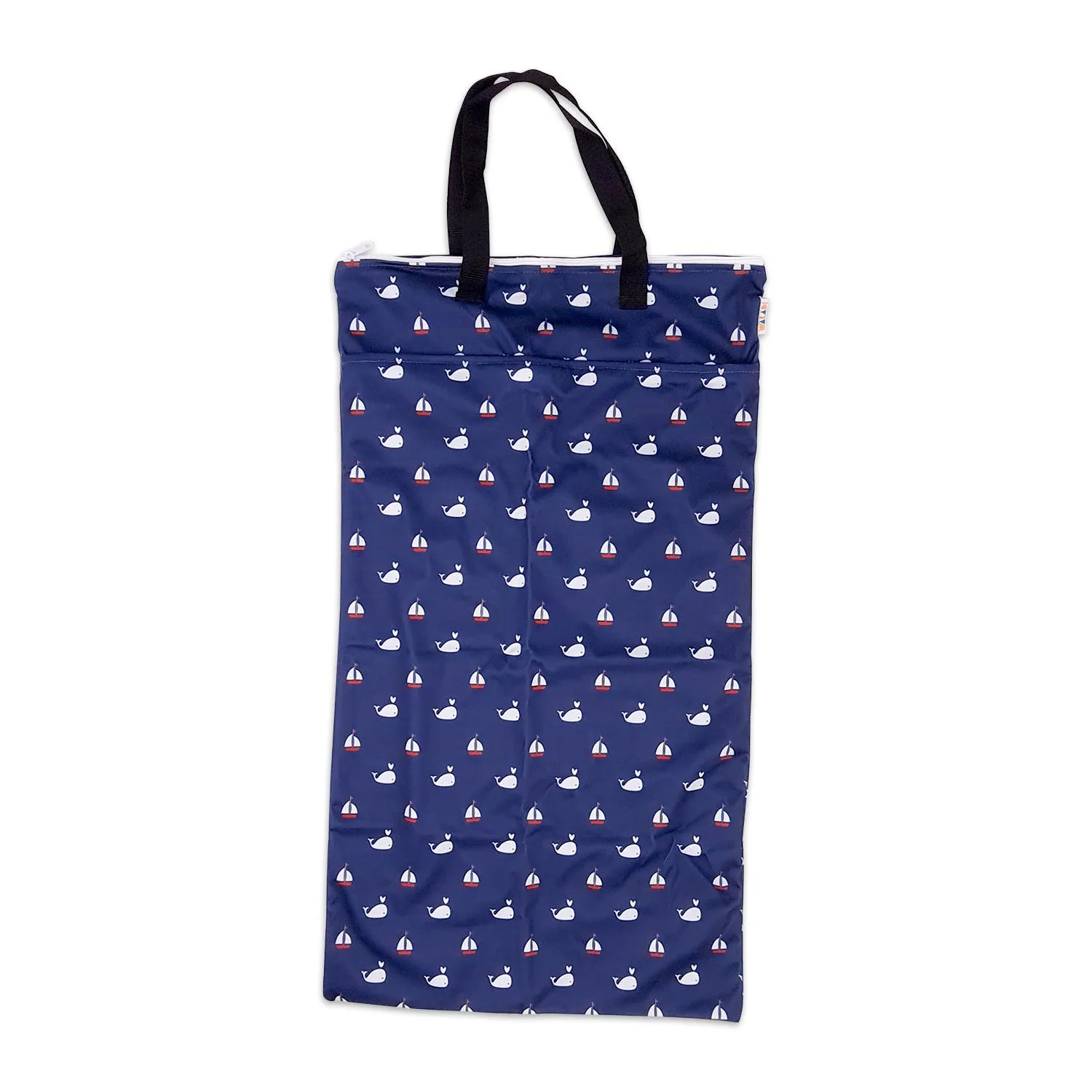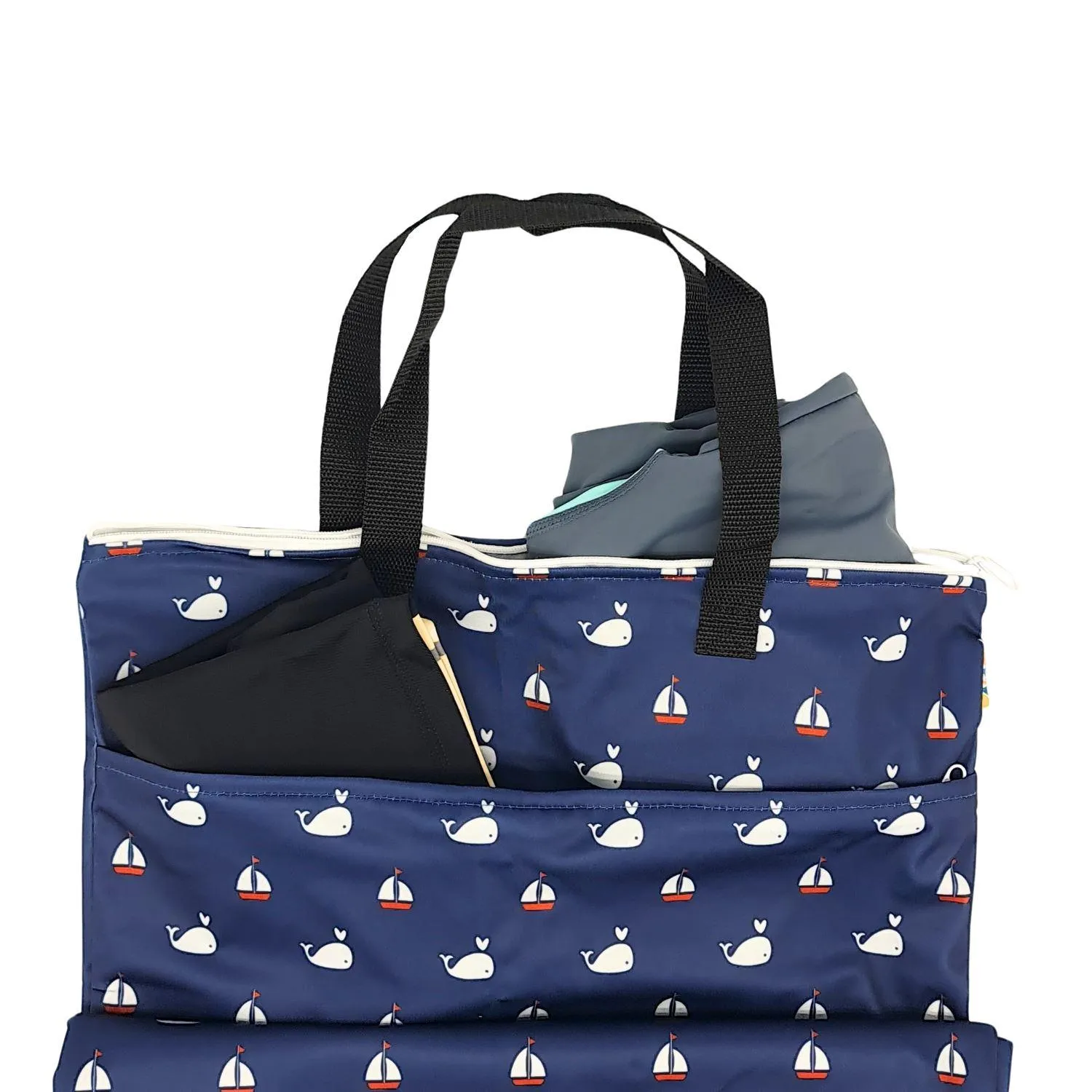 Waterproof large wet bag with 2 zips – Whales & Boats Design