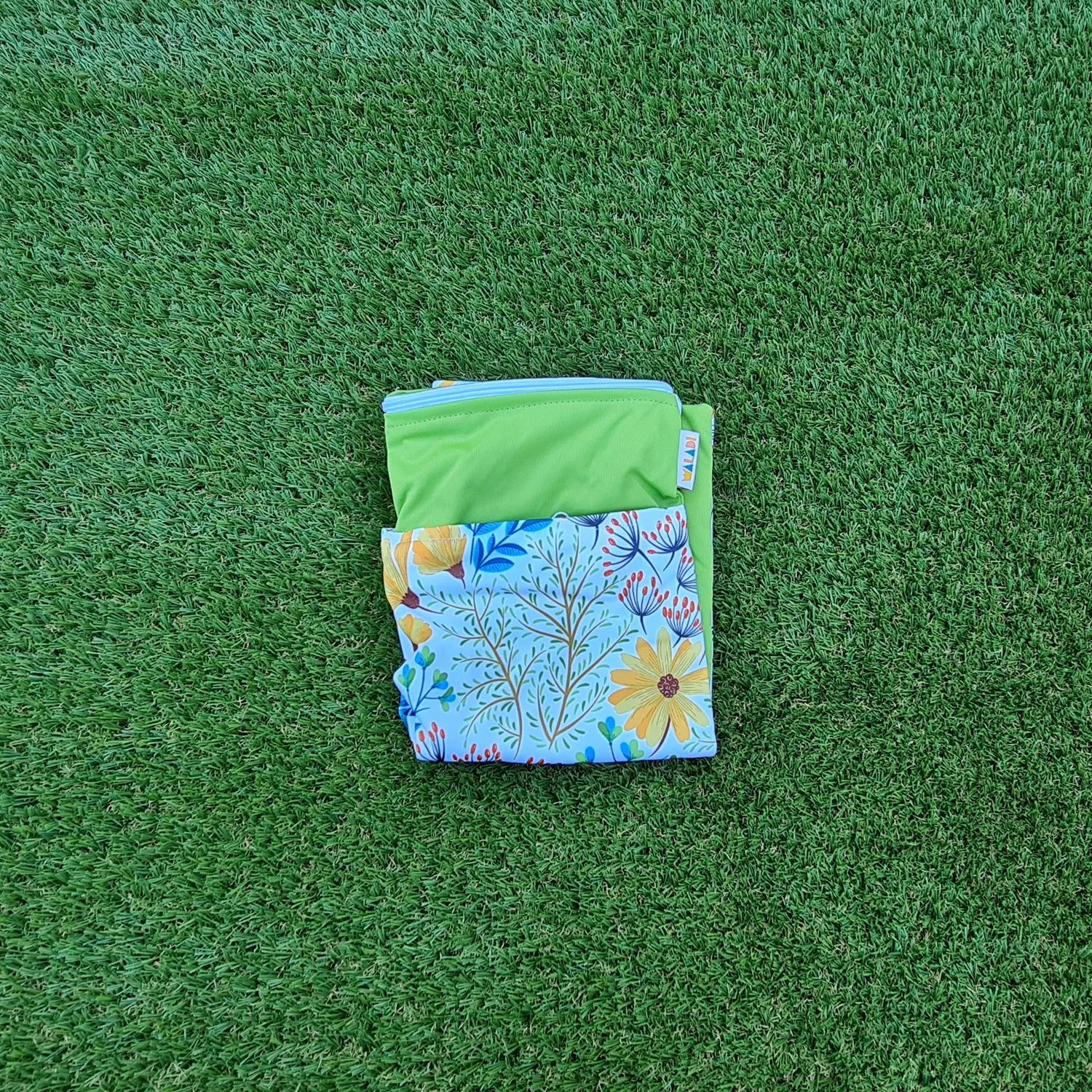 Can be used to store a clean set of clothes and nappies in one pocket, leaving the other pocket for the soiled/wet items. This bag will eliminate your need for plastic bags COMPLETELEY.