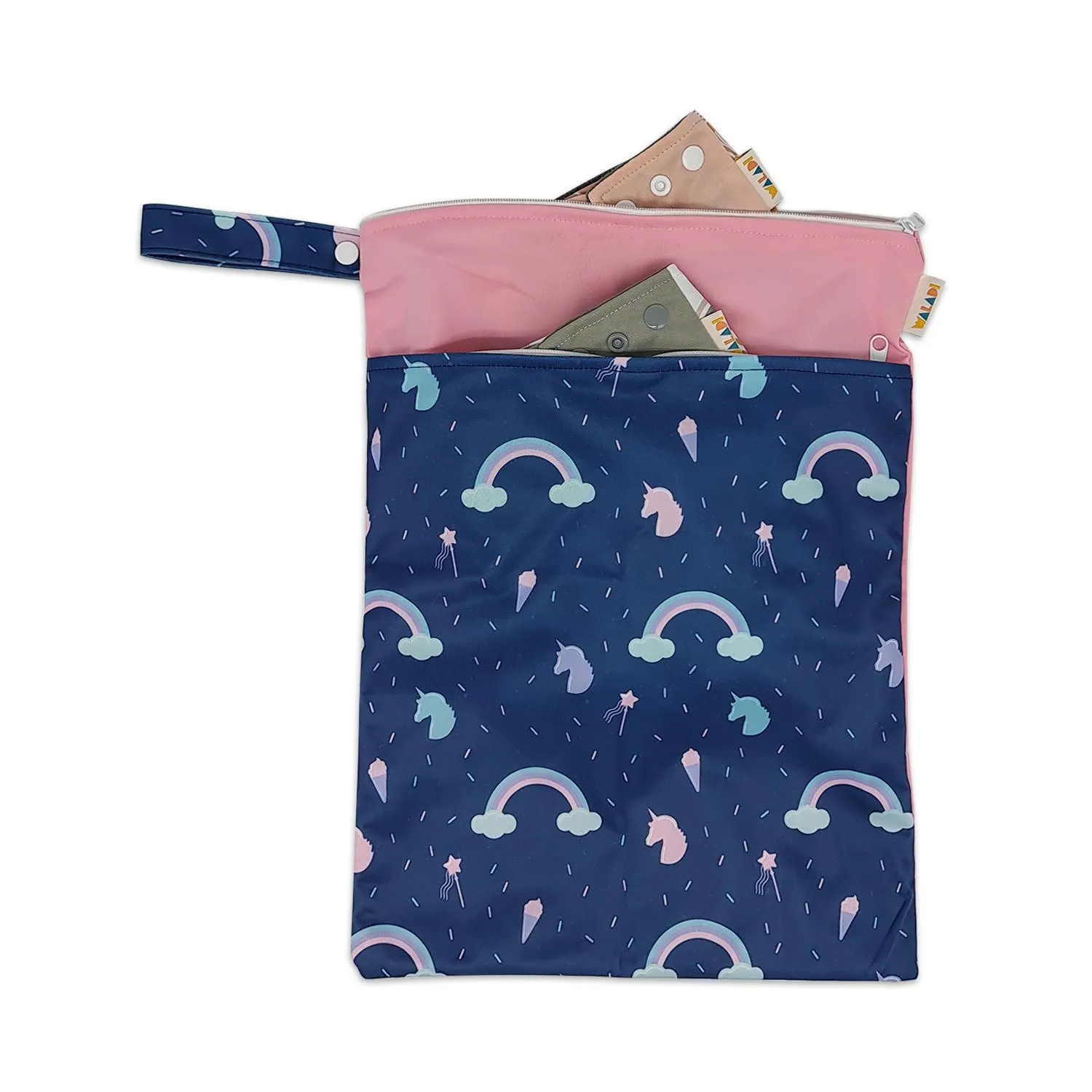 Please note: Refrain from washing or drying on hot cycles as this can damage the waterproof PUL layer of the bag.